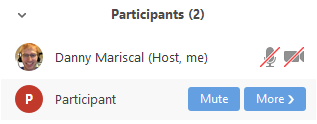 - In the Participants menu navigate to the participant who will be granted recording privileges. Click More next to their name.