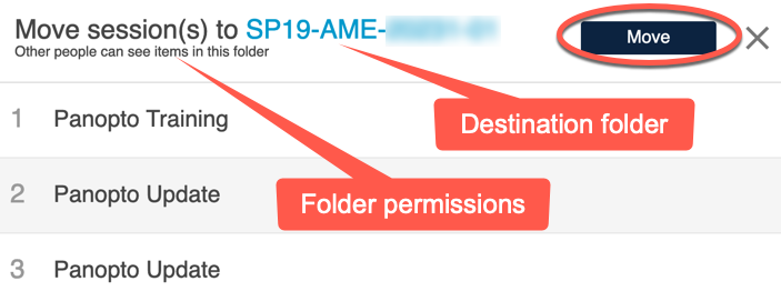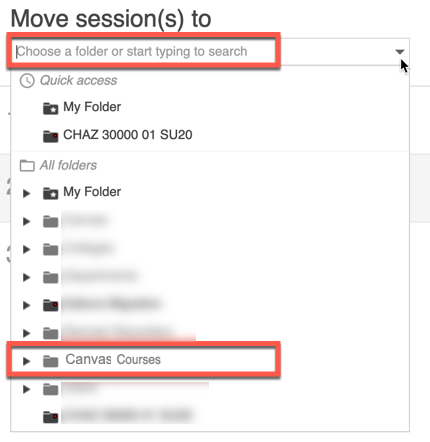 - Return to Canvas and refresh the page by clicking on the Panopto Video tool again. You should now see the recording(s) you just moved.
