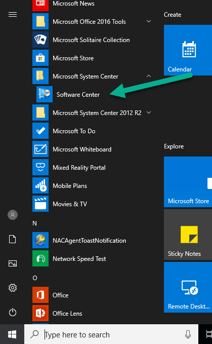 - Select Microsoft System Center and then Software Center