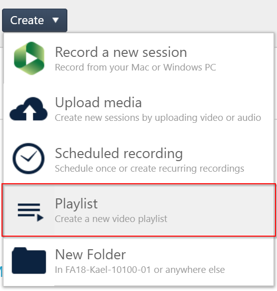 4. Click the Create button and then select Playlist.