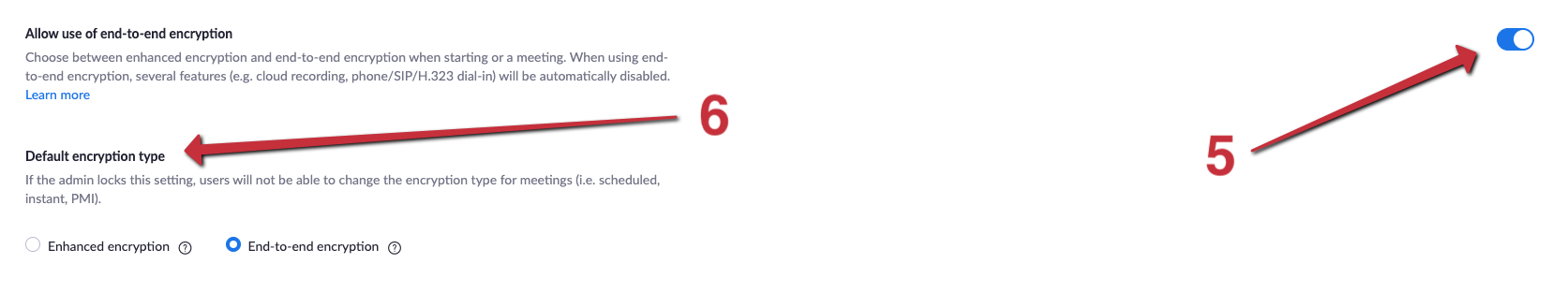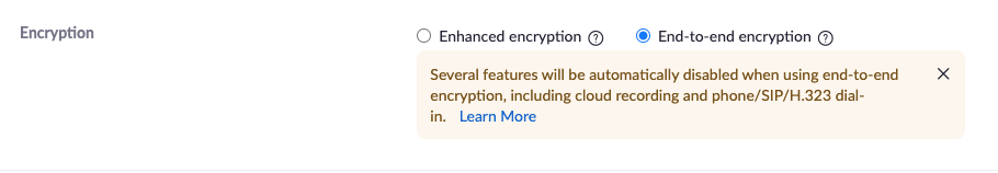 Note: Because of the limitations of E2E, we recommend using Enhanced encryption as the default encryption type and using end-to-end encryption for meetings where additional protection is required.