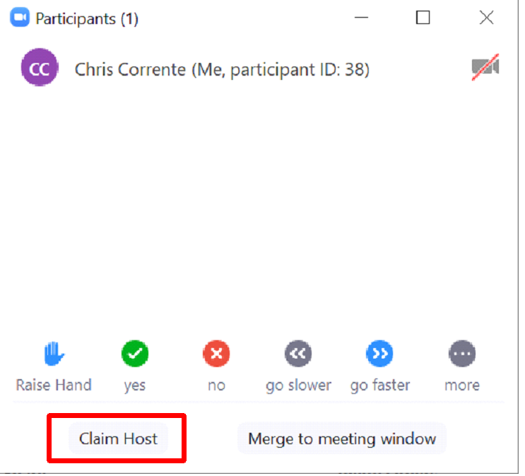 If you are not logged in when you start your Zoom meeting, you can follow these steps to claim host/take control of your meeting to enable all of the host features of Zoom.