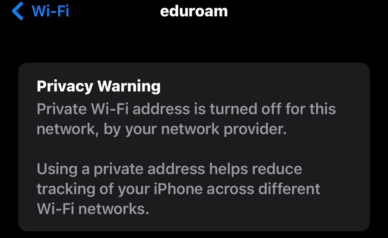 This configuration is by design for those connecting to the eduroam network. If you report having wifi issues on campus, this configuration enables engineers to diagnose and resolve problems. Because the eduroam network is encrypted and you have authenticated to the network, this setting does not affect the privacy of your data.