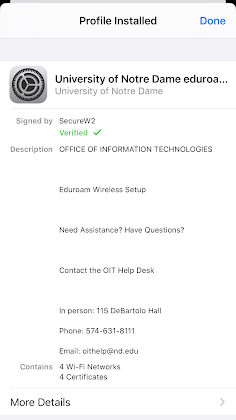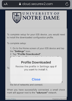 While running the eduroam.nd.edu utility your iOS device may display the following warning: