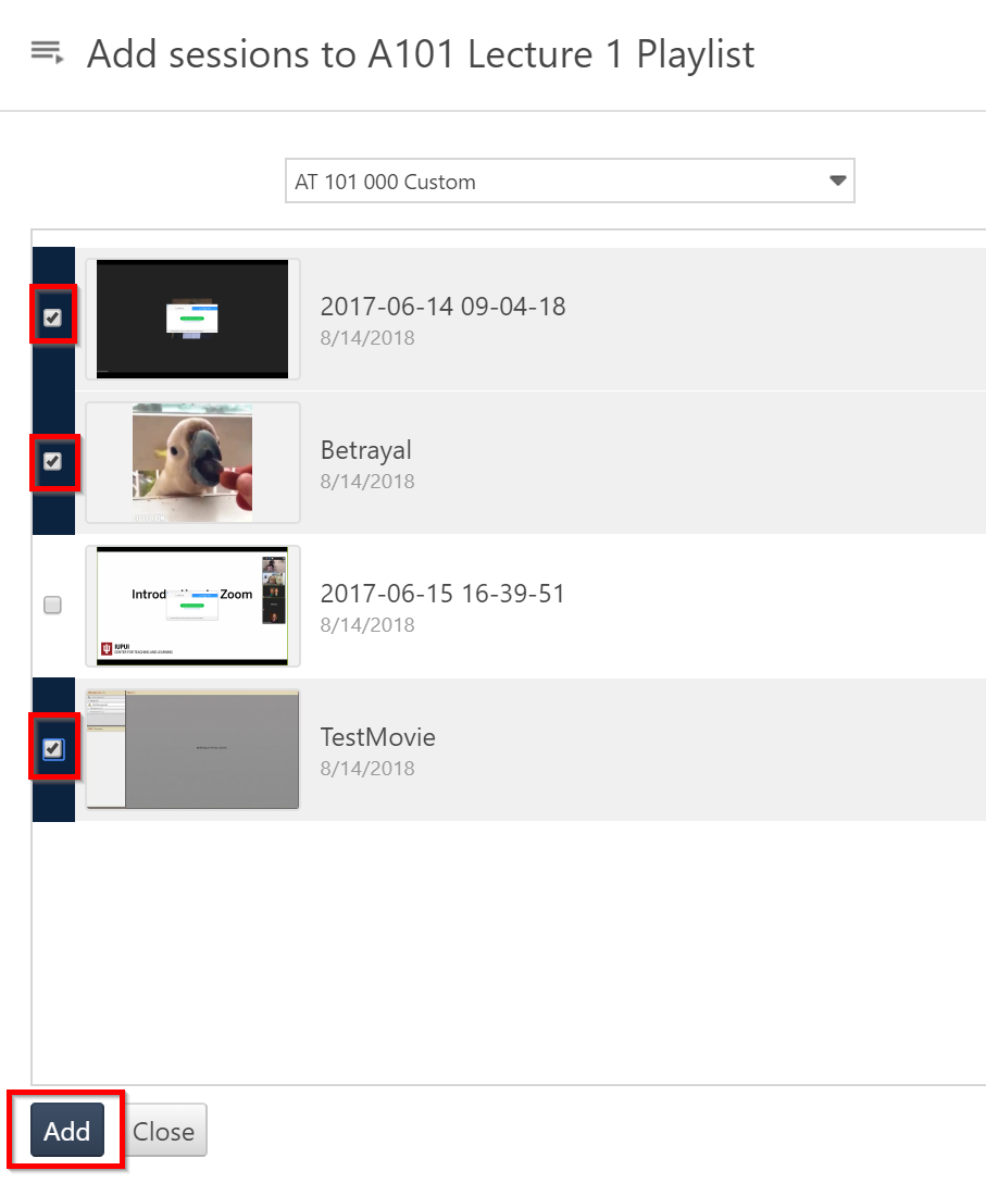 7. Choose the videos you want to add to the playlist by selecting the checkbox on the left side of the video.