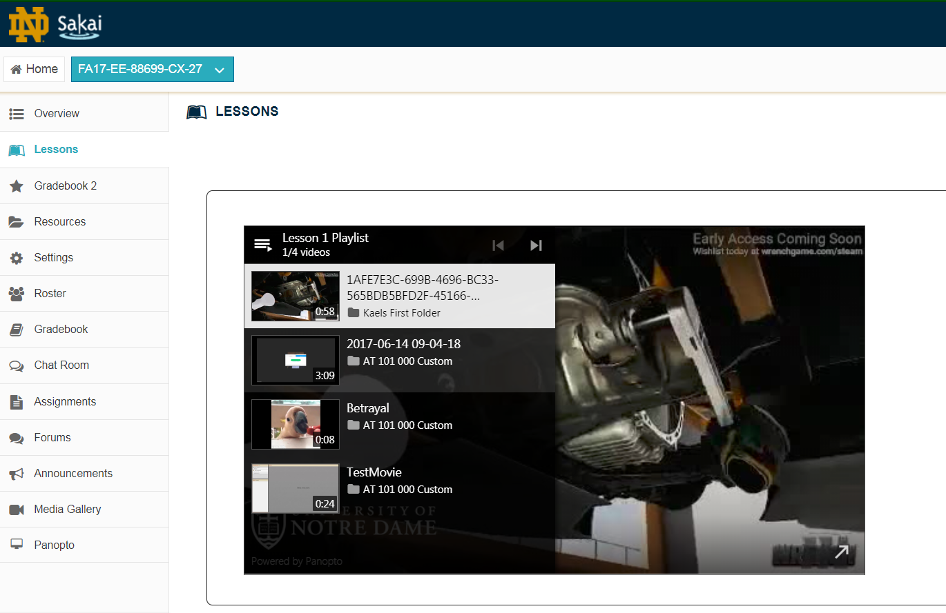 6. Navigate to where you would like to embed the playlist in Sakai. This could be an assignment, lesson page, or any location where the rich text editor is available in Sakai.
