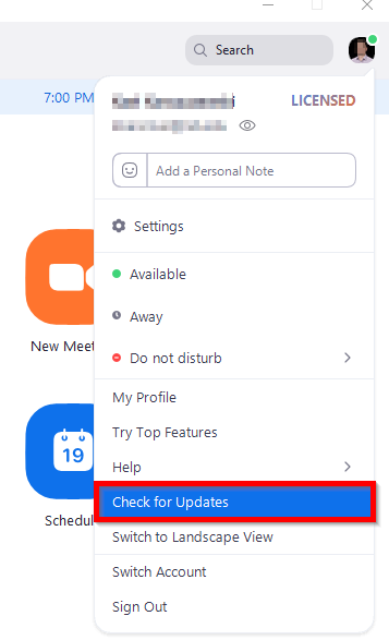 For additional information, see Zoom’s guide: Updating Zoom to the latest version