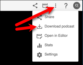 4. In the top-right corner of the player, click the 3 vertical dots and then Download podcast.
