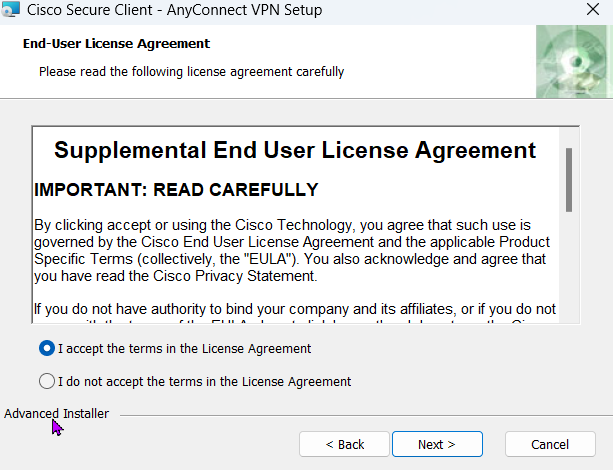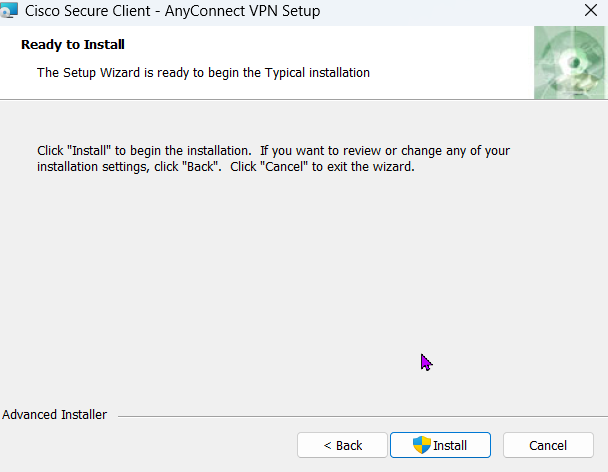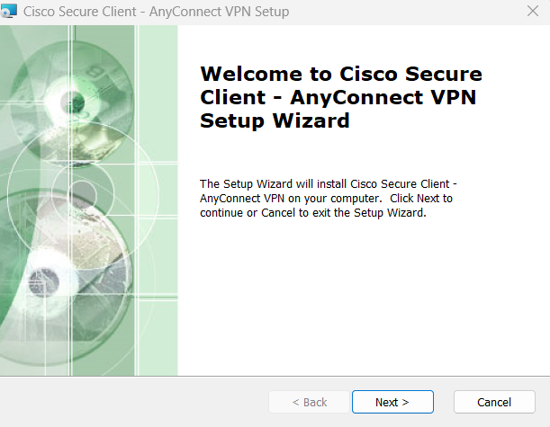 Cisco Secure Client is the recommended method to access the VPN. To install Cisco Secure Client: