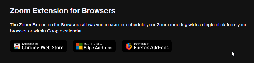 - Scroll down the page until you see "Zoom Extension for Browsers"